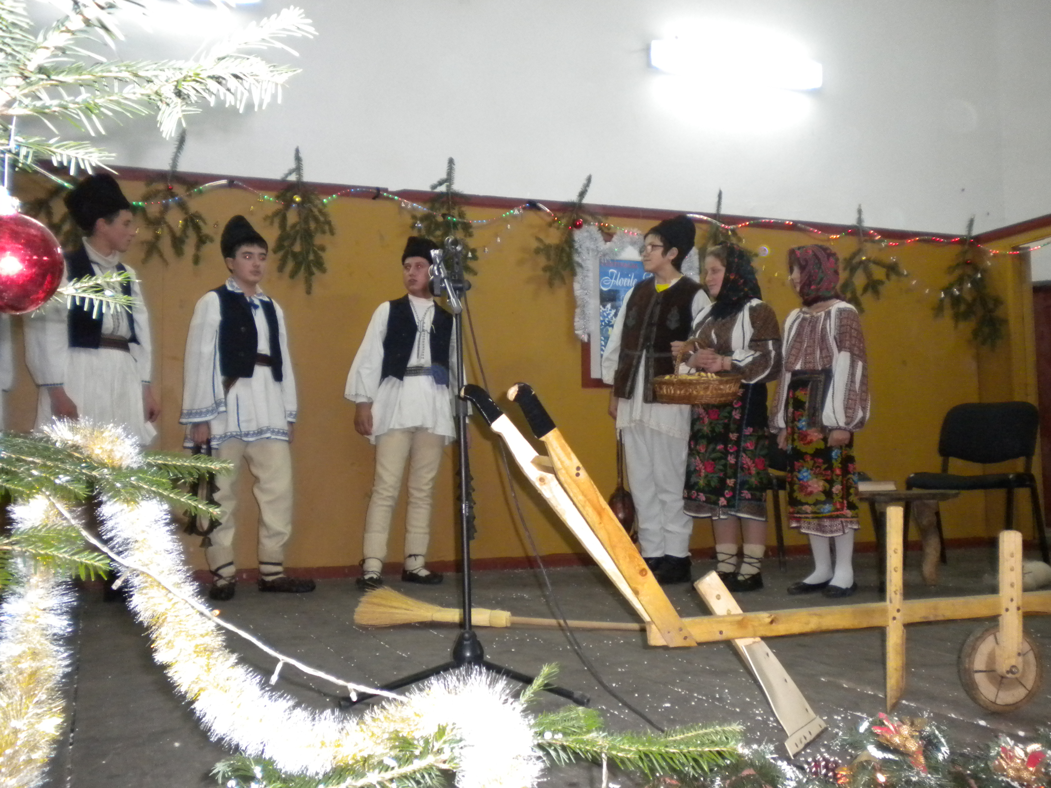 Colindătorii, îmbrăcaţi în costum popular (nu mereu), au fiecare câte un rol: unul sau doi declamă textul, neapărat cu inflexiuni teatrale, altul pocneşte din bici, altcineva agită clopotul (talanga) şi ultimul cântă din cimpoi sau buhai (între timp, instrumentele au fost înlocuite cu acordeonul, orga, fluierul, naiul etc.). Scopul este să fie cât mai mult zgomot.