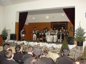 Grupurile de colindatori ,femei si copii ai Bisericii Santa Treime au dat startul serbarii nostre urmat de grupuri de uratori si dansatori ai Scolii Corbi si Caminului cultural .