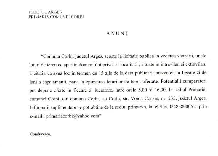 - COMUNA CORBI, JUDETUL ARGES – INFORMATII