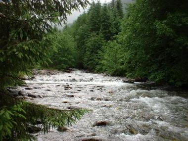 La trei minute în aval de placa de beton ajungem la cantonul Nisipuri, 1160 metri altitudine, unde forestierii ocupă o cameră. Iar la 15 minute în aval de aici sosim/ reajungem la începutul drumului forestier ce suie de-a lungul apei Pojarna.